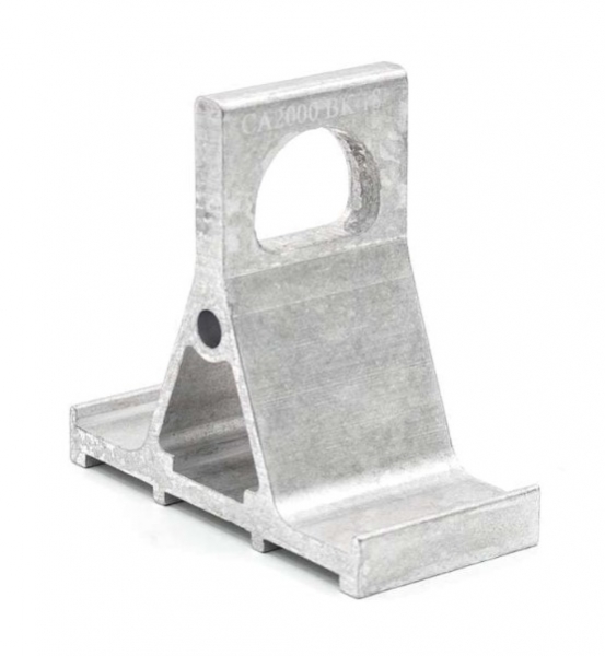 Кронштейн СА 2000 имеет дополнительные выступы на прилегающей к опоре поверхности, увеличивающие угол захода монтажной ленты на кронштейн, что повышает прочность его крепления. Изготавливается из высокопрочного алюминиевого сплава методом экструзия.